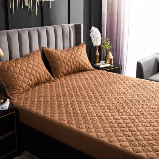 Cotton Quilted Waterproof Mattress Cover - Brown