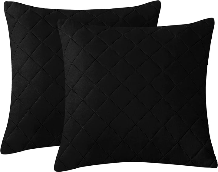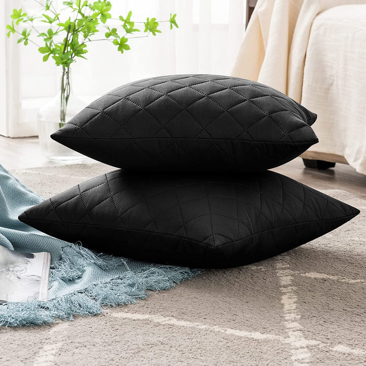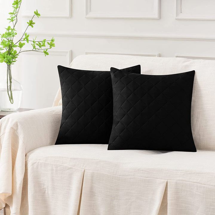 QUILTED CUSHION COVER SQUARE PATTERN 16 X 16 INCHES - BLACK